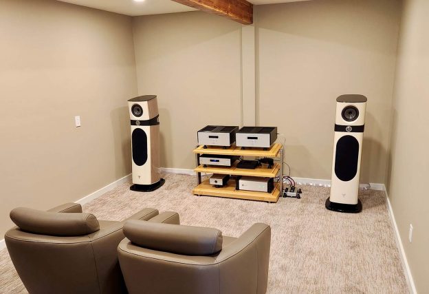 This project was the culmination of Dan’s passion for high-quality stereo sound, which began two years ago when we upgraded his great room with Focal speakers and a JL Audio subwoofer. That initial project led him to design and build a dedicated music room.